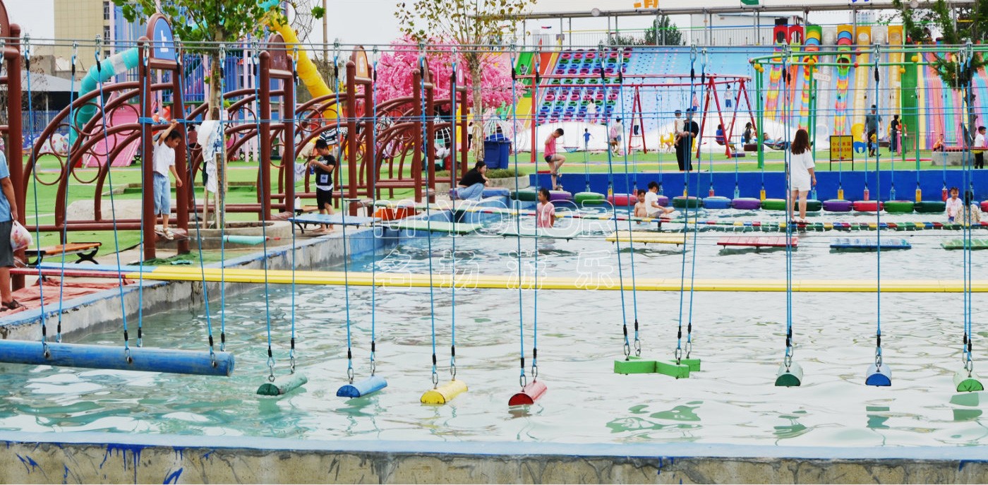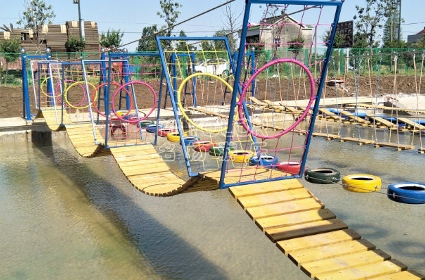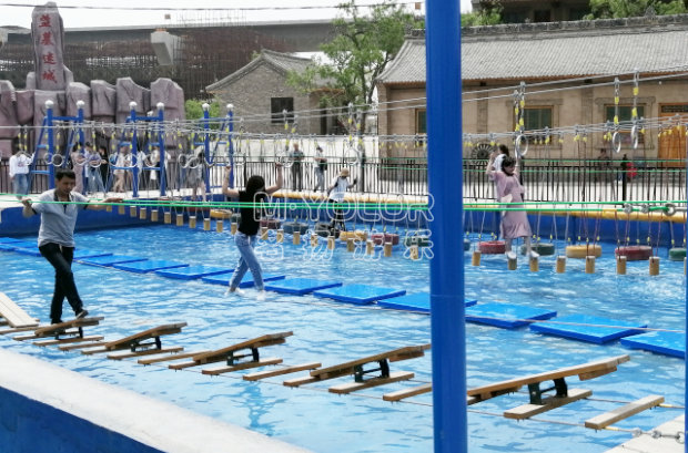 水上拓展是由兩岸水泥基礎(chǔ)上的兩套鋼構(gòu)作為支撐。鋼構(gòu)下方連接鋼索成U型,鋼索間有一定間隔,依托在水上的拓展活動(dòng),水上拓展兼詳細(xì)能和實(shí)踐的綜合素質(zhì)教育,它以運(yùn)動(dòng)為依托,以培訓(xùn)為方式,以感悟?yàn)槟康摹⒔槿胝叩臐撃苓M(jìn)行無窮挖掘,從而讓介入者充分體驗(yàn)挑戰(zhàn)的高興和激情。